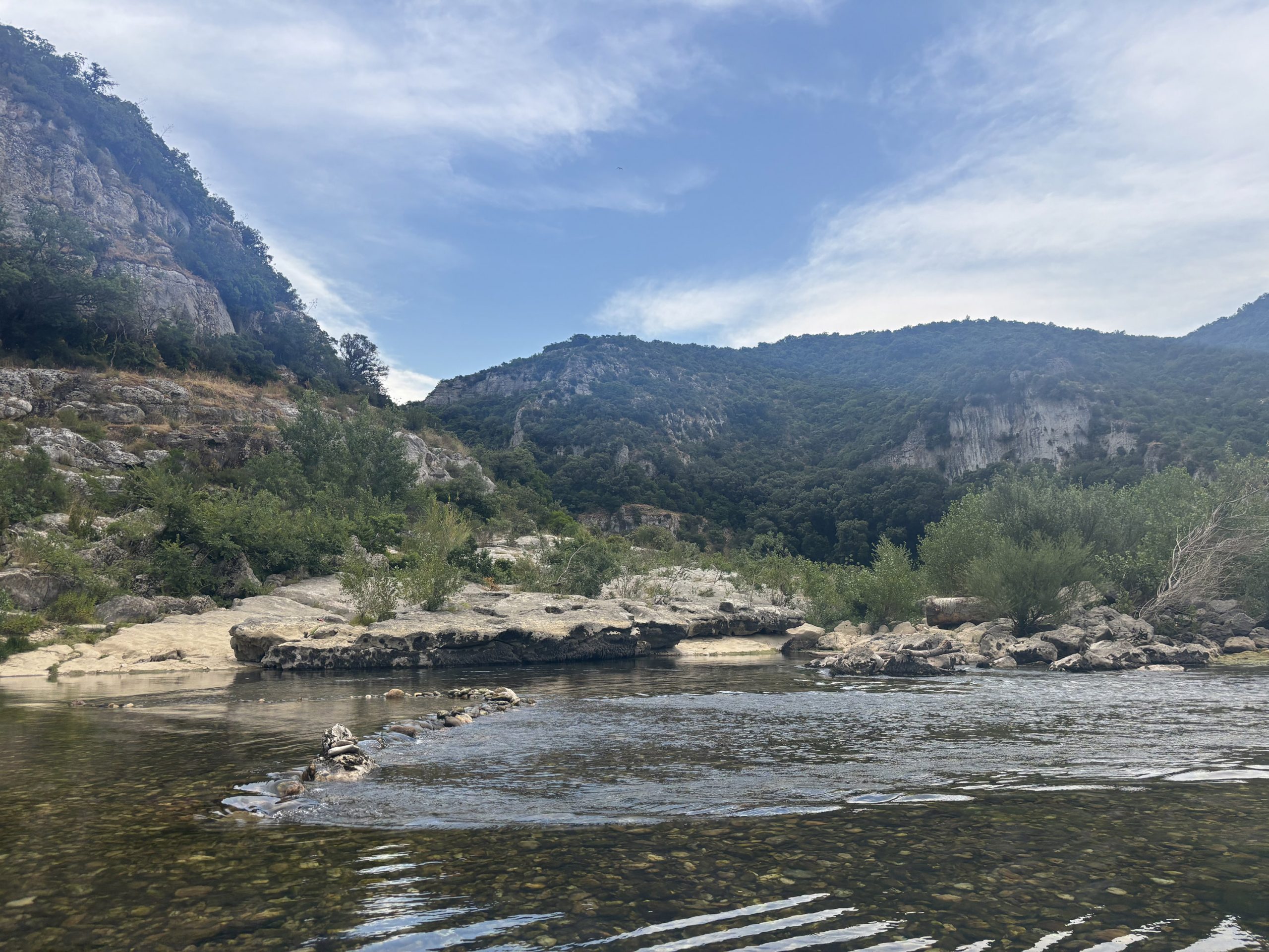 The riverbed was made of small stones similar to the path we had taken to get there. Wading into the water was the first time I had felt cool since I had arrived in Arles. I was so grateful for the reprieve.